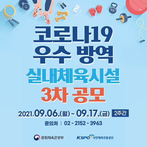¡á ¹®ÈüÀ°°ü±¤ºÎ & ±¹¹ÎüÀ°ÁøÈï°ø´Ü - Äڷγª19 ¿ì¼ö ¹æ¿ª ½Ç³»Ã¼À°½Ã¼³ 3Â÷ °ø¸ð ¾È³». 1. ¹®ÈüÀ°°ü±¤ºÎ¿Í ±¹¹ÎüÀ°ÁøÈï°ø´Ü¿¡¼´Â Äڷγª19 ÇÇÇØÁö¿øÀ» À§ÇØ ¡¸¿ì¼ö ¹æ¿ª ½Ç³»Ã¼À°½Ã¼³ Æ÷»ó»ç¾÷¡¹À» ÃßÁøÇϰí ÀÖ½À´Ï´Ù. 2. À§¿Í °ü·ÃÇÏ¿© ¡¸Äڷγª19 ¿ì¼ö ¹æ¿ª ½Ç³»Ã¼À°½Ã¼³ 3Â÷ °ø¸ð¡¹¸¦ ¾Æ·¡¿Í °°ÀÌ ÁøÇàÇÏ¿À´Ï