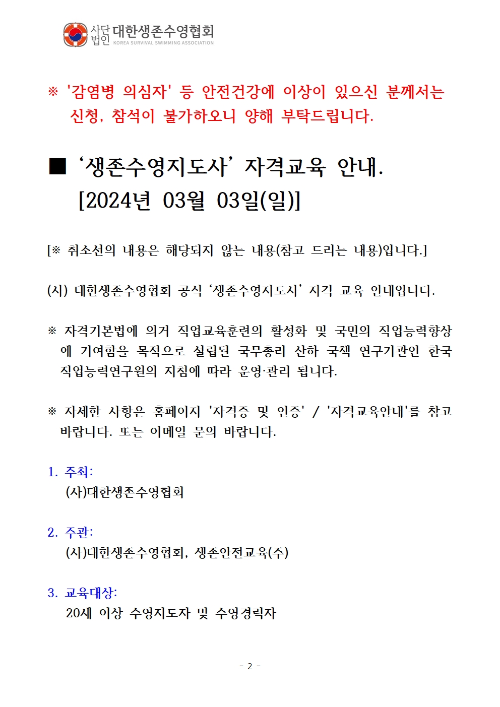 1) °ø½Ä »ýÁ¸¼ö¿µ ±³À°³»¿ë Á¤¸³ ¹× Æò°¡´Â Àü¹®ÇùȸÀÎ (»ç) ´ëÇÑ»ýÁ¸¼ö¿µÇùȸ¿¡¼ ÁøÇàÇÕ´Ï´Ù.